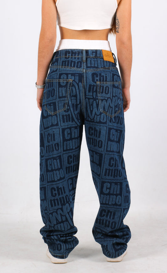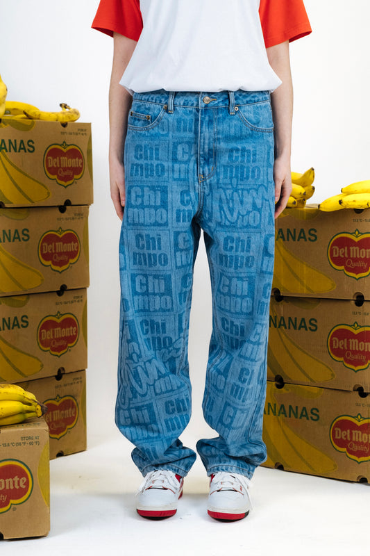Monogram Baggy Jeans - Light Blue